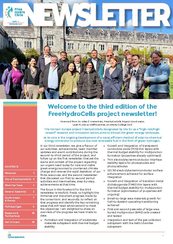 With foreword from Dr Ailbe Ó Manacháin, FreeHydroCells Project Coordinator, Lead PI, Senior Staff Scientist, University College Cork